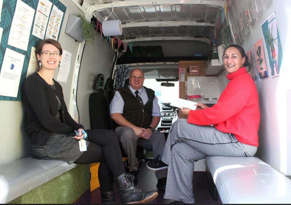 Every square foot of space is exploited, and hidden behind solid wooden gates sits the famous ONE25 ‘Night bus’. This slightly battered outreach van, which Ian likened to a converted ambulance (without the stretcher), we find it is internally hung with welcoming fairy lights. Women volunteers go out from 9 pm until the early morning hours, seven nights a week, to the streets where the women and girls work. On board is everything from compassion to contraceptives, food and drinks and warm clothing, needle exchange, and help in more ways than there’s space to write. In this converted van, they build a rapport, encouraging the women to use the Grosvenor Centre for additional support. With the recent cost of living crisis, the volunteers have seen many of the girls return to the streets as they struggle to survive. And so the cycle begins again.