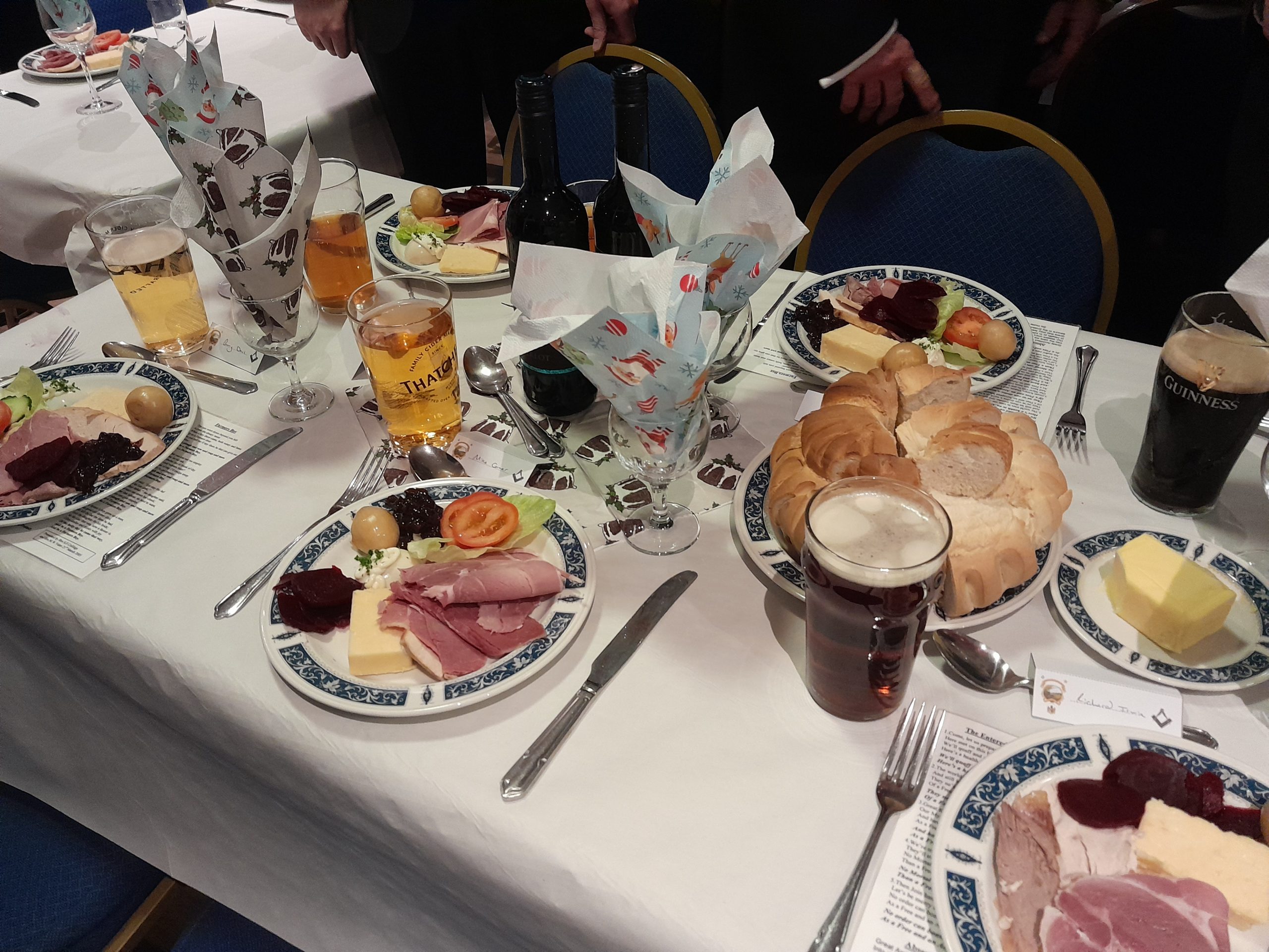 December 2025 Farmers night was well supported with approximately 90 Freemasons attending. After the Farming Brethren had taken up the Offices in the Lodge and conducted an excellent Initiation, everyone retired downstairs to the Festive Board, donated and prepared by the Farming Brethren and Lodge volunteers. Is it the warm and friendly atmosphere, the benevolence of the evening or the infamous Sherry Trifles, laden with copious volumes of Sherry, Rum and other Spirits that lead to such generous donations from all who attend? Many thousands of pounds have been raised and donated to Chairty on Farmers Night. This year was no exception, with a staggering £2,050 being generously given by Members and Visitors.